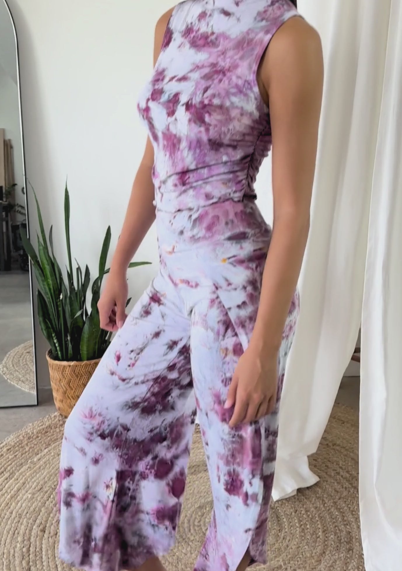 Moisture wicking, ultra soft active jersey. 95% Rayon 5% Spandex. Each piece is hand dyed and may vary in color and placement. Jala is ethically made with love in Southern California, USA.