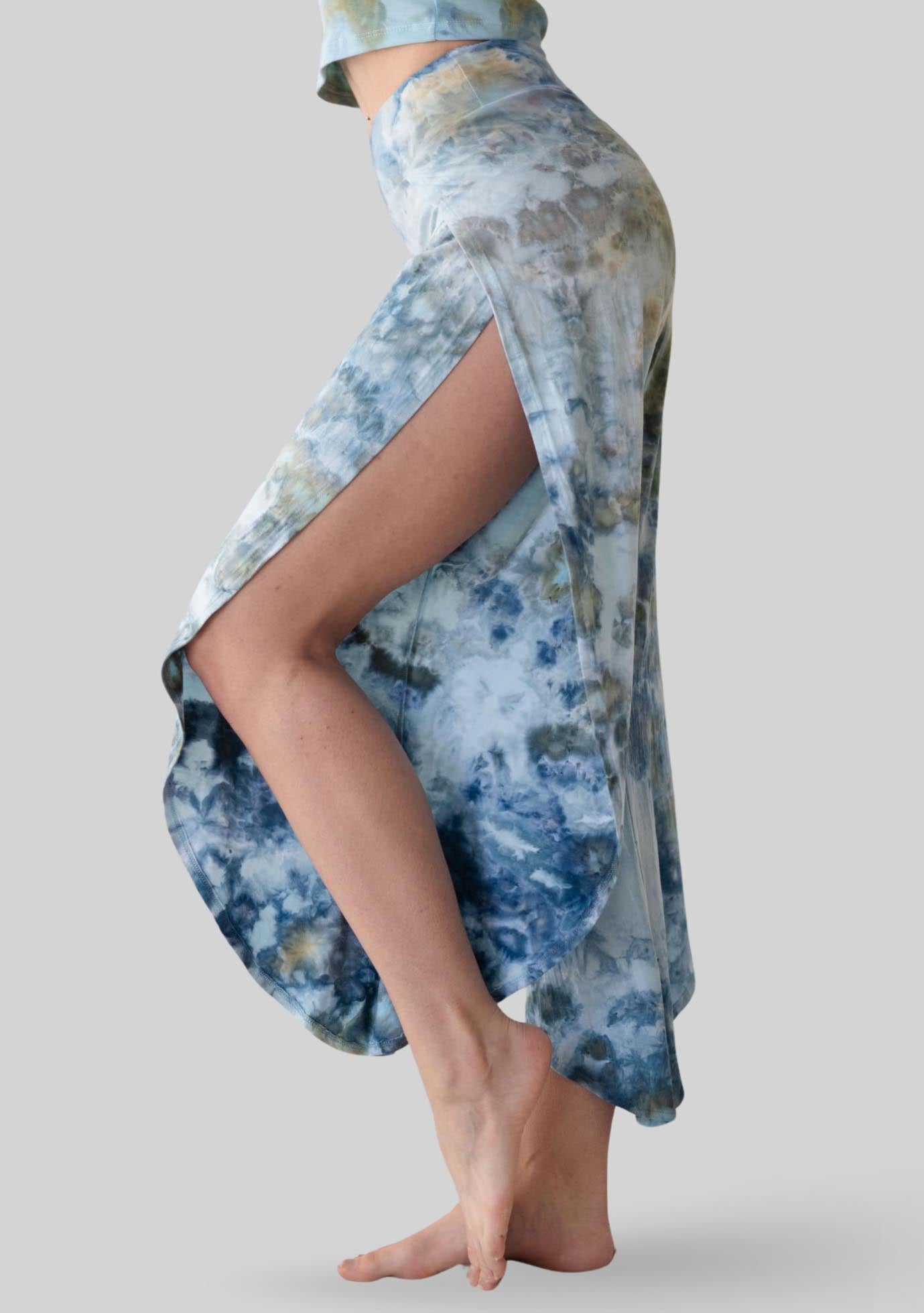 Moisture wicking, ultra soft active jersey. 95% Rayon 5% Spandex. Each piece is hand dyed and may vary in color and placement. Jala is ethically made with love in Southern California, USA.
