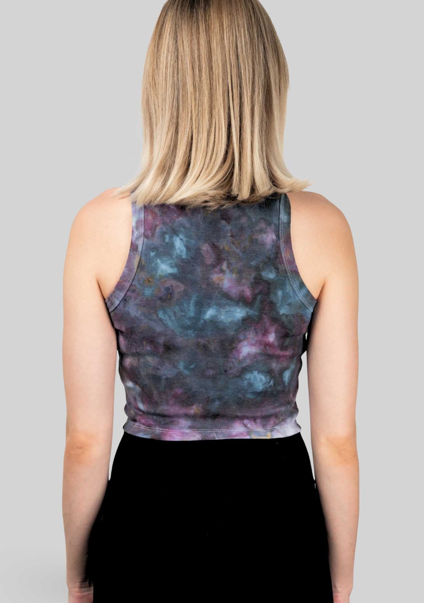 Moisture wicking, ultra soft micro rib jersey, 52% Airlume Cotton, 48% Polyester. Each piece is hand dyed and may vary in color and placement.