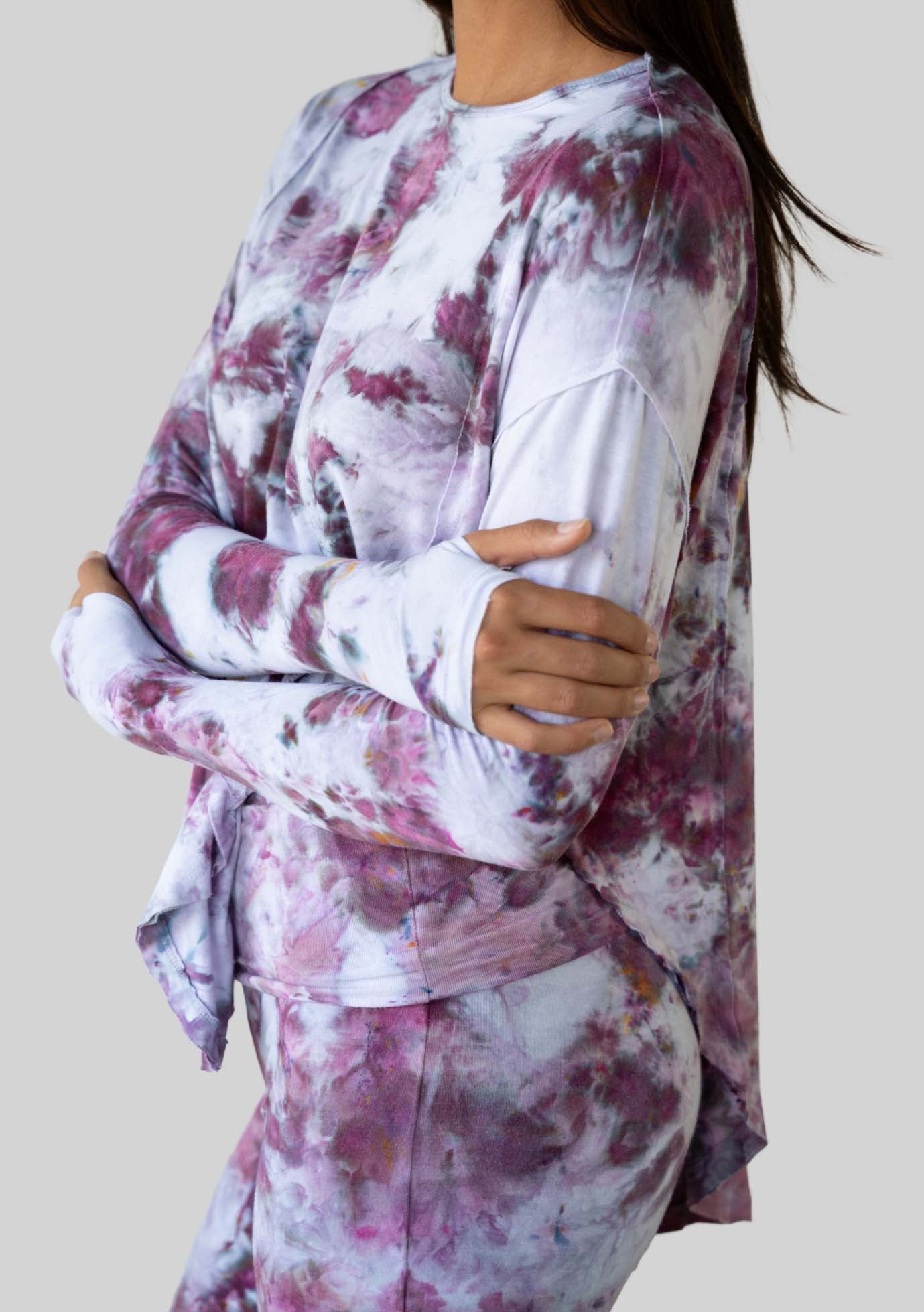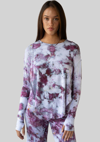 This ultra-cozy long sleeve features fitted sleeves, raw edges, and a flowy, oversized body that makes for the perfect post workout piece.