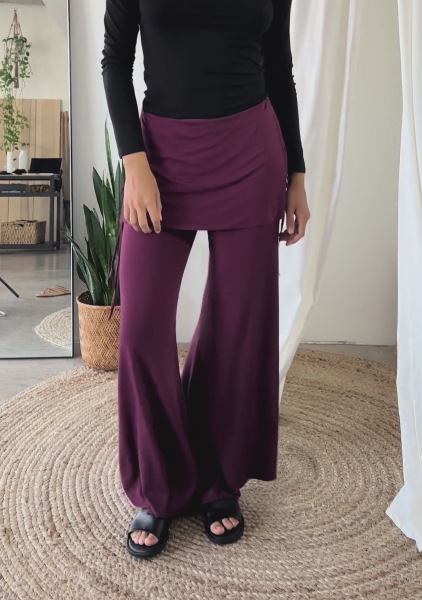 The Luna Pant blends relaxed comfort with modern detail. A low-rise waistband, flowy fit, and skirt overlay with side ties create a look that’s easy yet unique. The raw edge hem allows you to cut the length to your perfect fit.