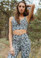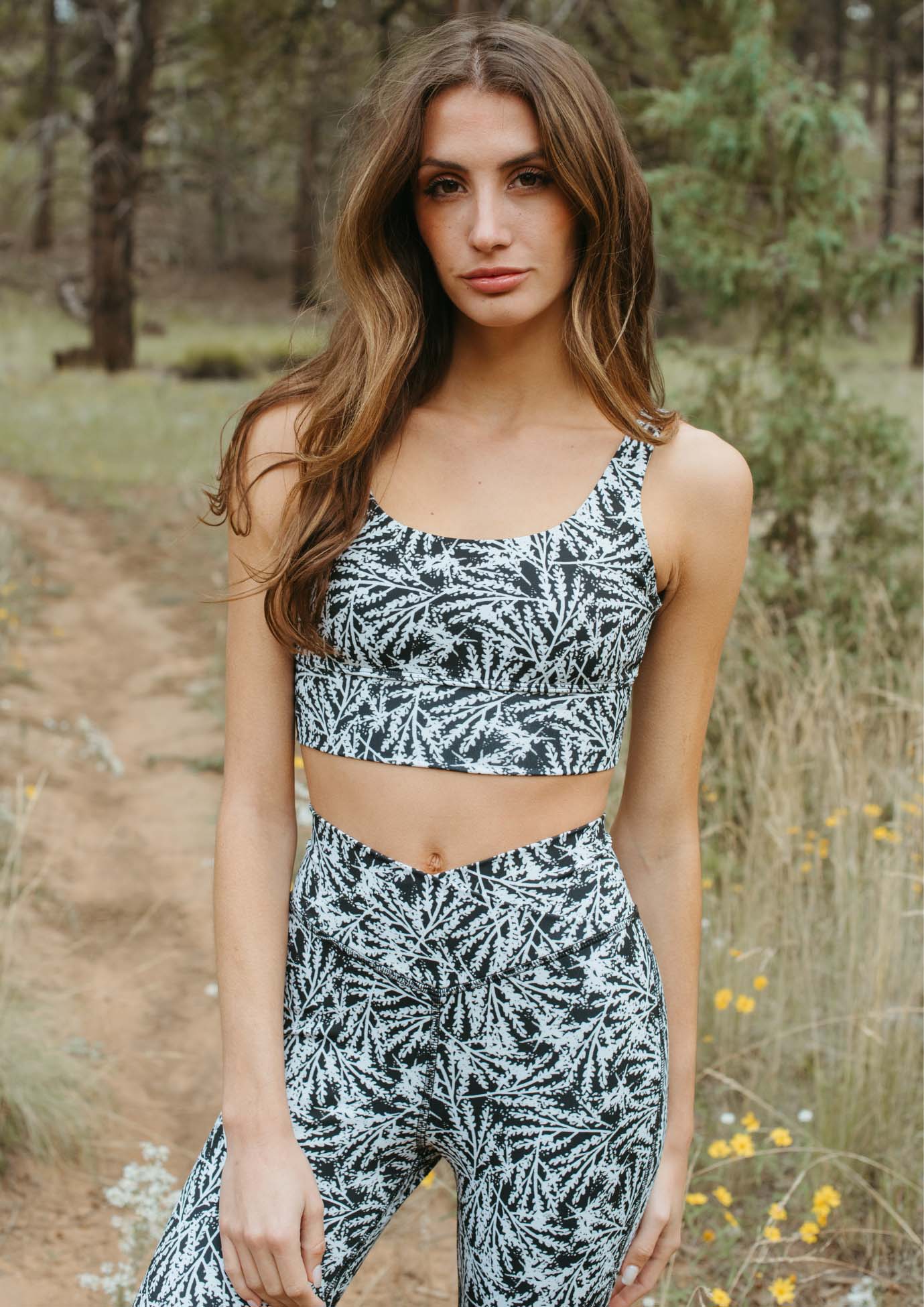 Time to elevate your sports bra game with this incredible piece. It features two layers of fabric for extra support, comfortable wide elastic straps and powerful high-performance brushed active fabric that is printed using a sustainable process.