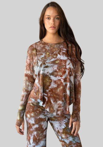 This ultra-cozy long sleeve features fitted sleeves, raw edges, and a flowy, oversized body that makes for the perfect post workout piece.
