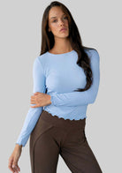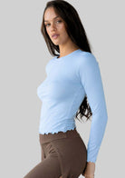Meet your new go-to long sleeve. This flattering top features ultra soft jersey with merrow finishes on the hem and sleeves. Pair it with your favorite leggings, or dress it up with a pair of heels and jeans for the perfect day-time look.